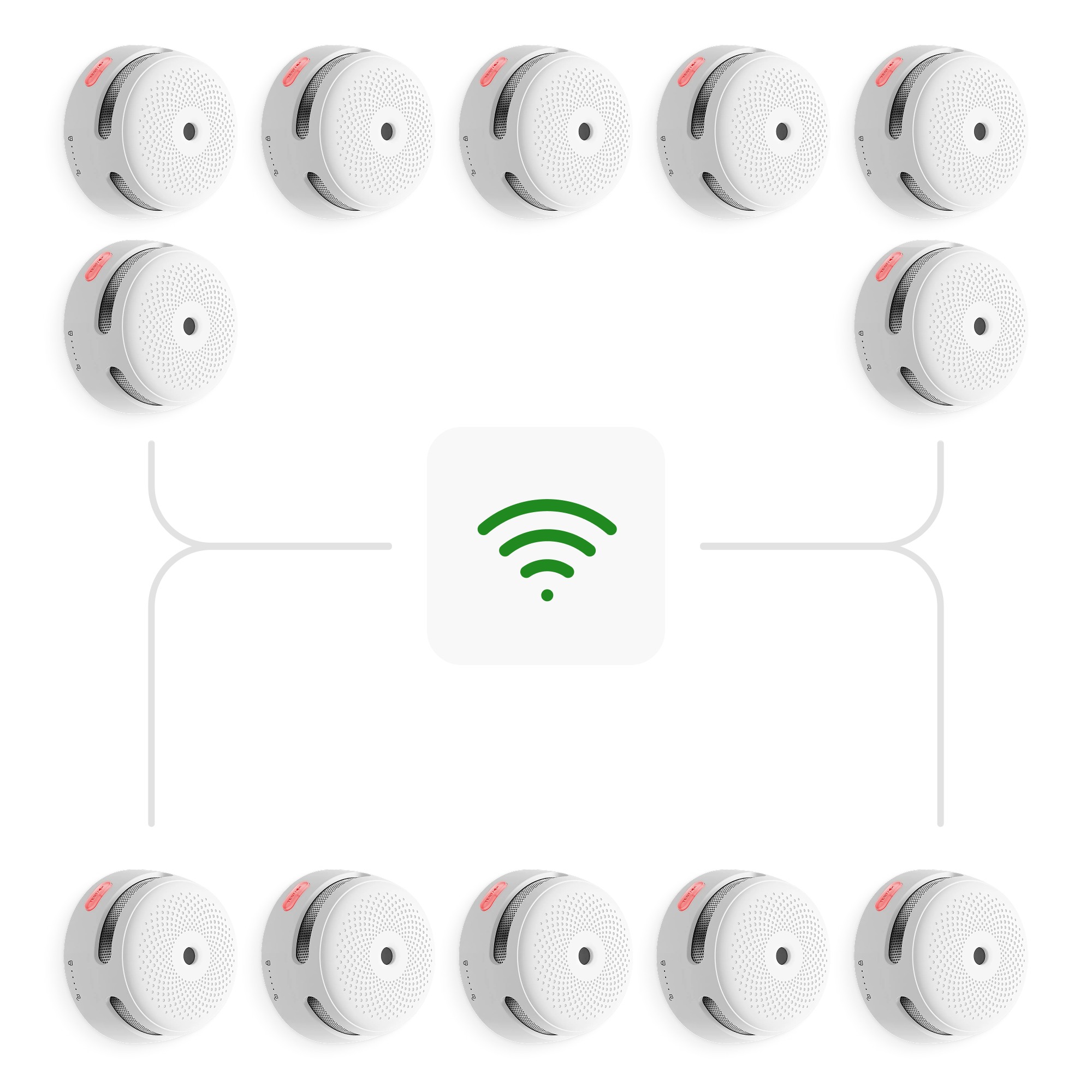 Denne pakken med 12 stk X-Sense brannvarslere utnytter den patenterte Link+Pro RF-teknologien, som sørger for en stabil og trådløs forbindelse med imponerende rekkevidde – helt uten kabeltrekking.
