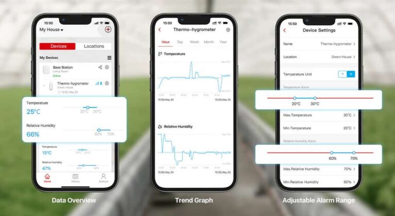Via appen får du et oversiktlig bilde av inneklimaet, kan analysere historiske trender og sette egne varsler som sier ifra når temperatur eller luftfuktighet avviker fra dine ønskede nivåer.