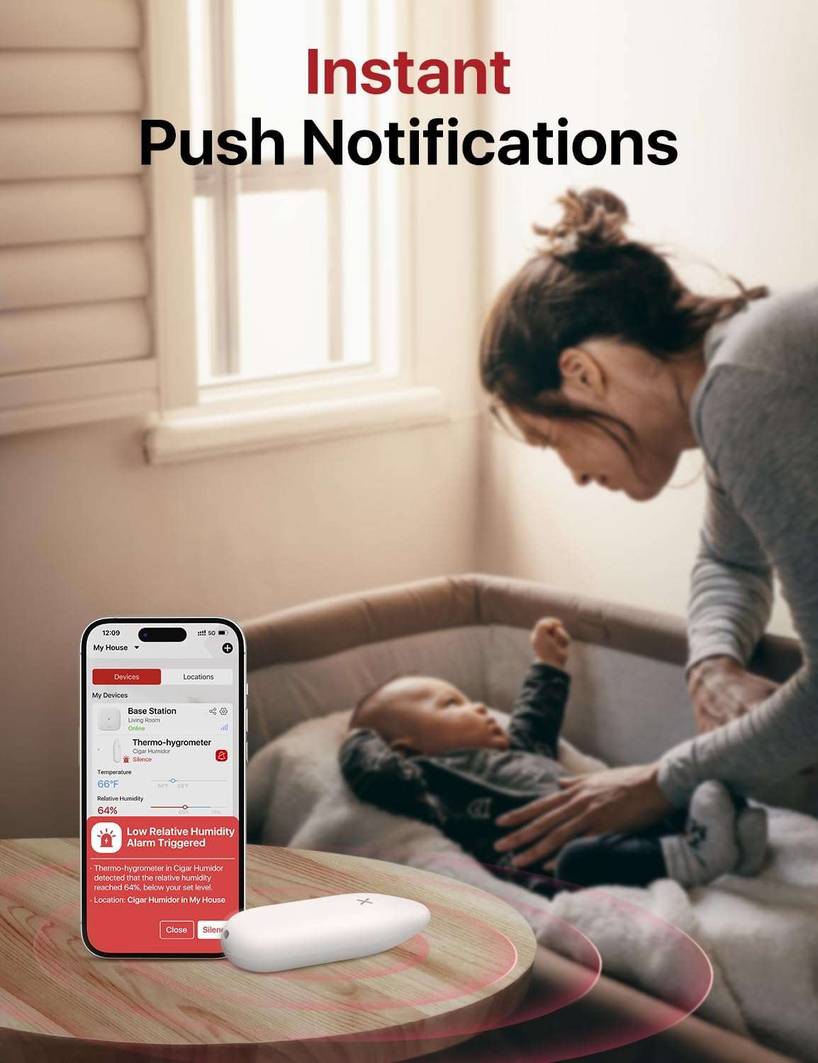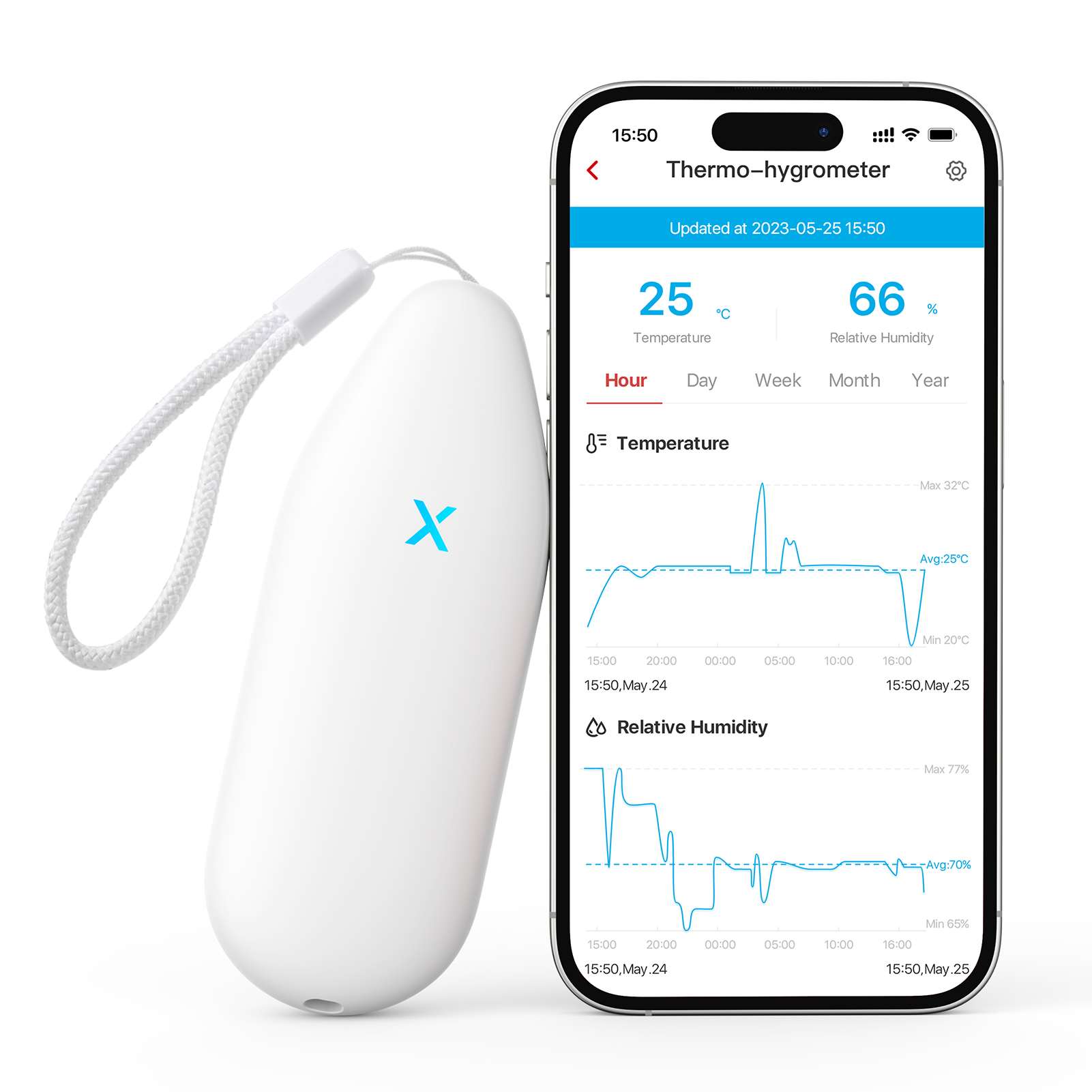 Ha full kontroll over temperaturen i rommet med X-Sense Smart temperatursensor. Se trender, live temperatur og sett opp varslinger når temperaturen går utenfor et bestemt intervall.