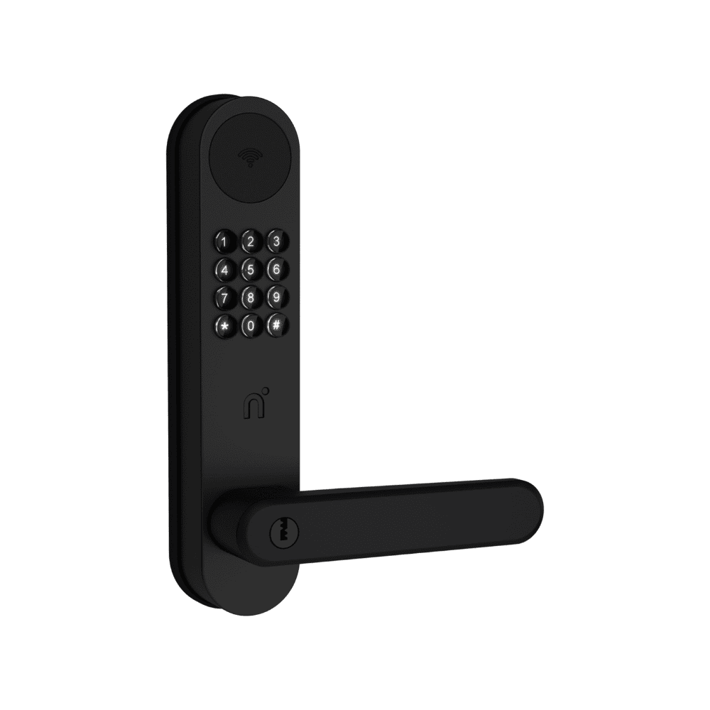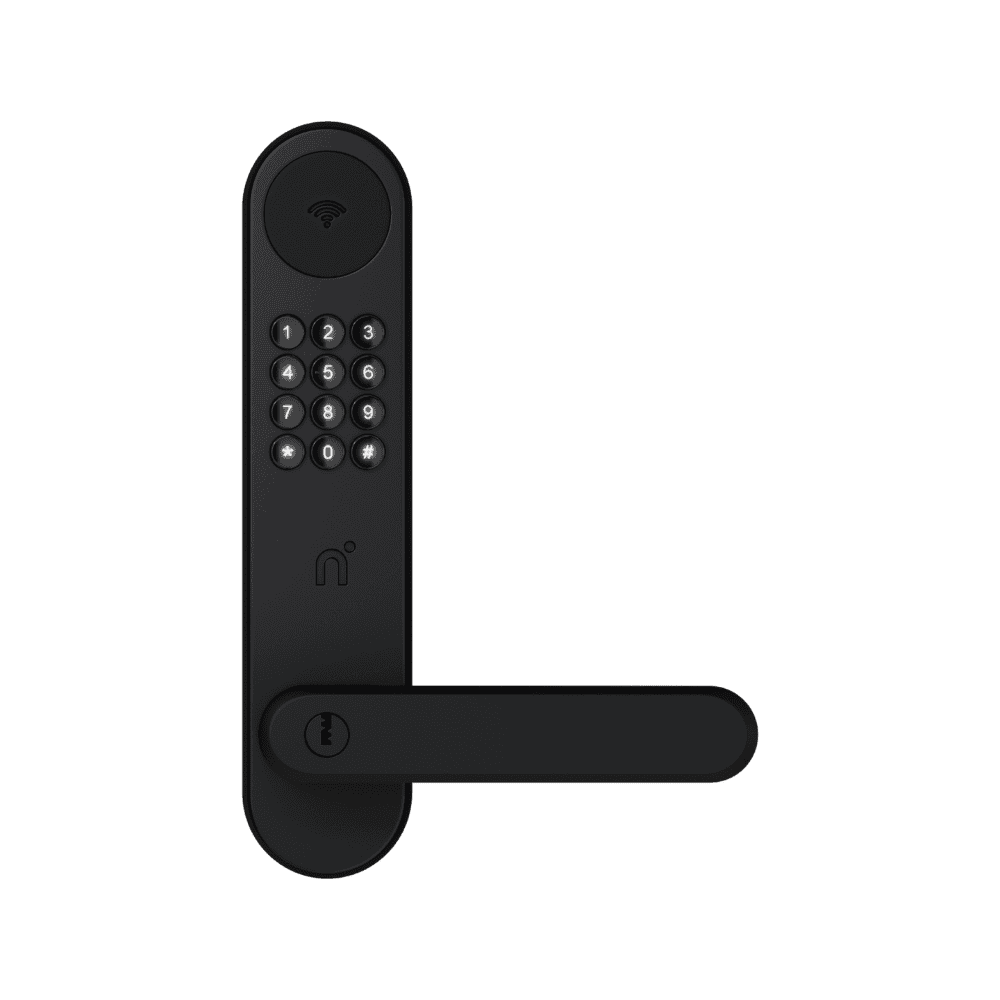 Optimaliser hjemmets sikkerhet med Nimly Code kodelås for ytterdør. Utstyrt med kodepanel og MIFARE-avleser for enkel bruk av adgangsbrikker.
