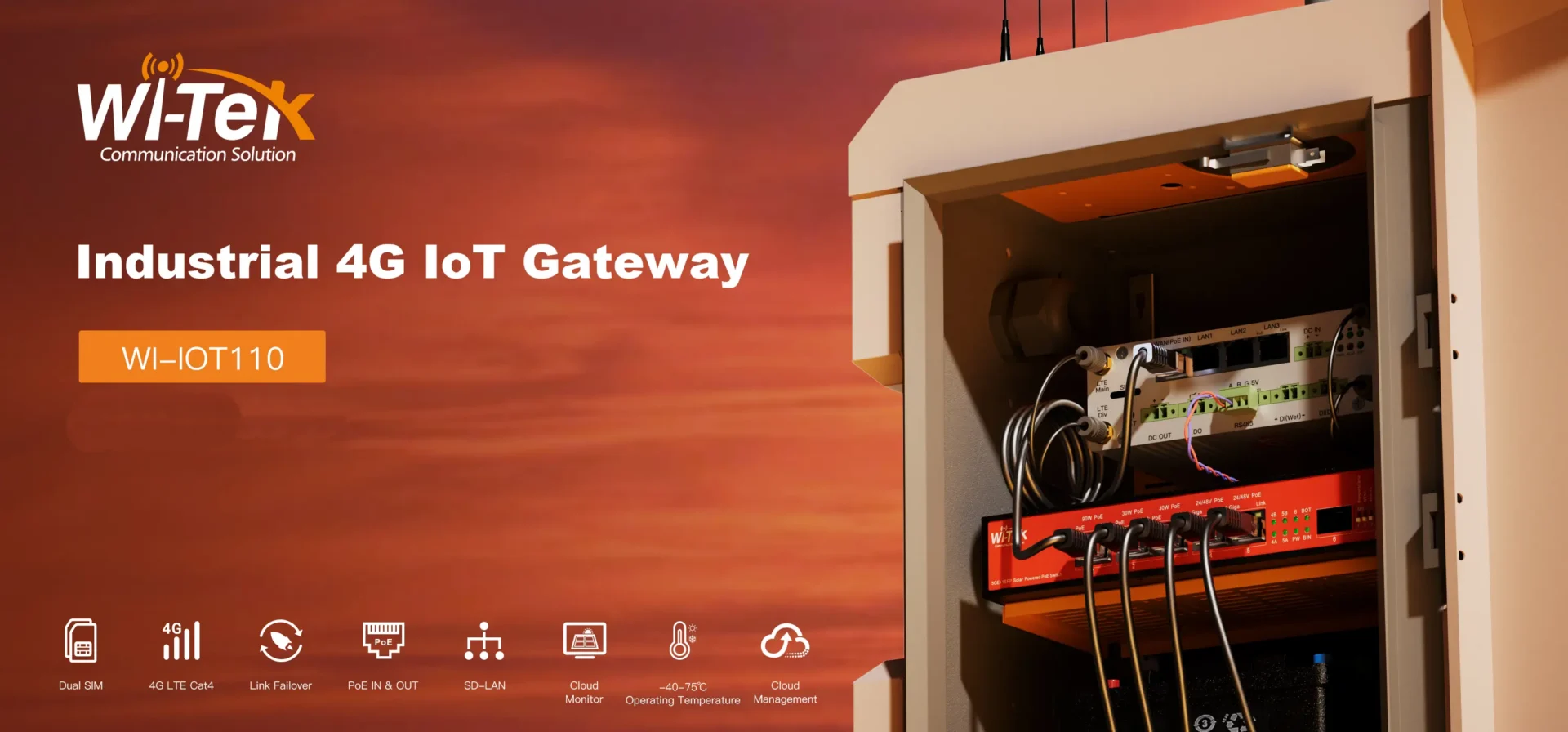 Wi-Tek WI-IOT110 er en robust, industriell 4G-gateway og IoT-kontroller som gir deg full oversikt over solcelleanlegg, batteristatus og miljøforhold i sanntid via skyen.
