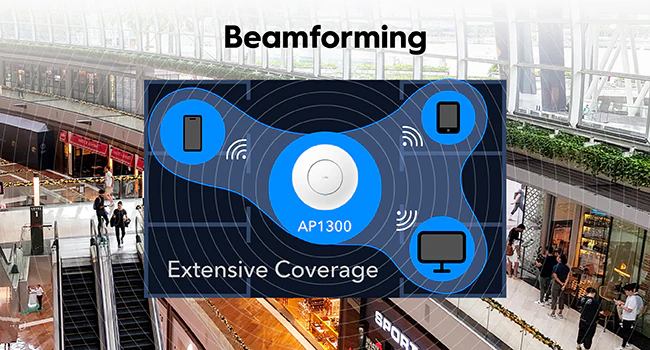 Beamforming-teknologi lokaliserer tilkoblede enheter og sender et målrettet signal direkte mot dem, noe som forbedrer både rekkevidden og ytelsen.