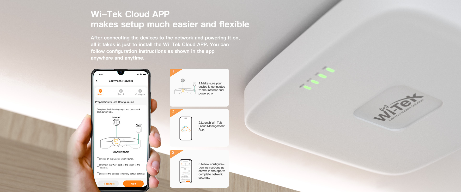 WI-AP717MP kan enkelt konfigureres og administreres via produsentens Cloud App / sentraliserte skyplattform. Dette gir deg full kontroll over nettverket – uansett hvor du befinner deg.
