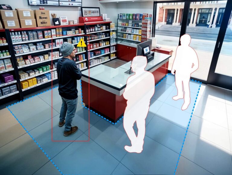 Markes ut soner du ønsker å sikre, som f.eks. serverrom, bakrom, hyller osv. Hvis noen kommer inn i sonen får du beskjed umiddelbart.