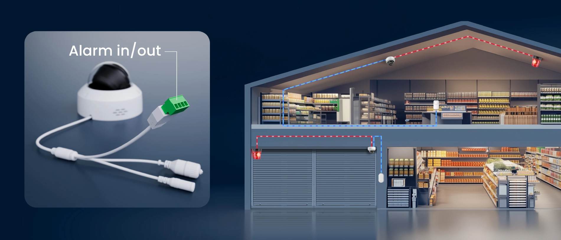 Markes ut soner du ønsker å sikre, som f.eks. serverrom, bakrom, hyller osv. Hvis noen kommer inn i sonen får du beskjed umiddelbart.