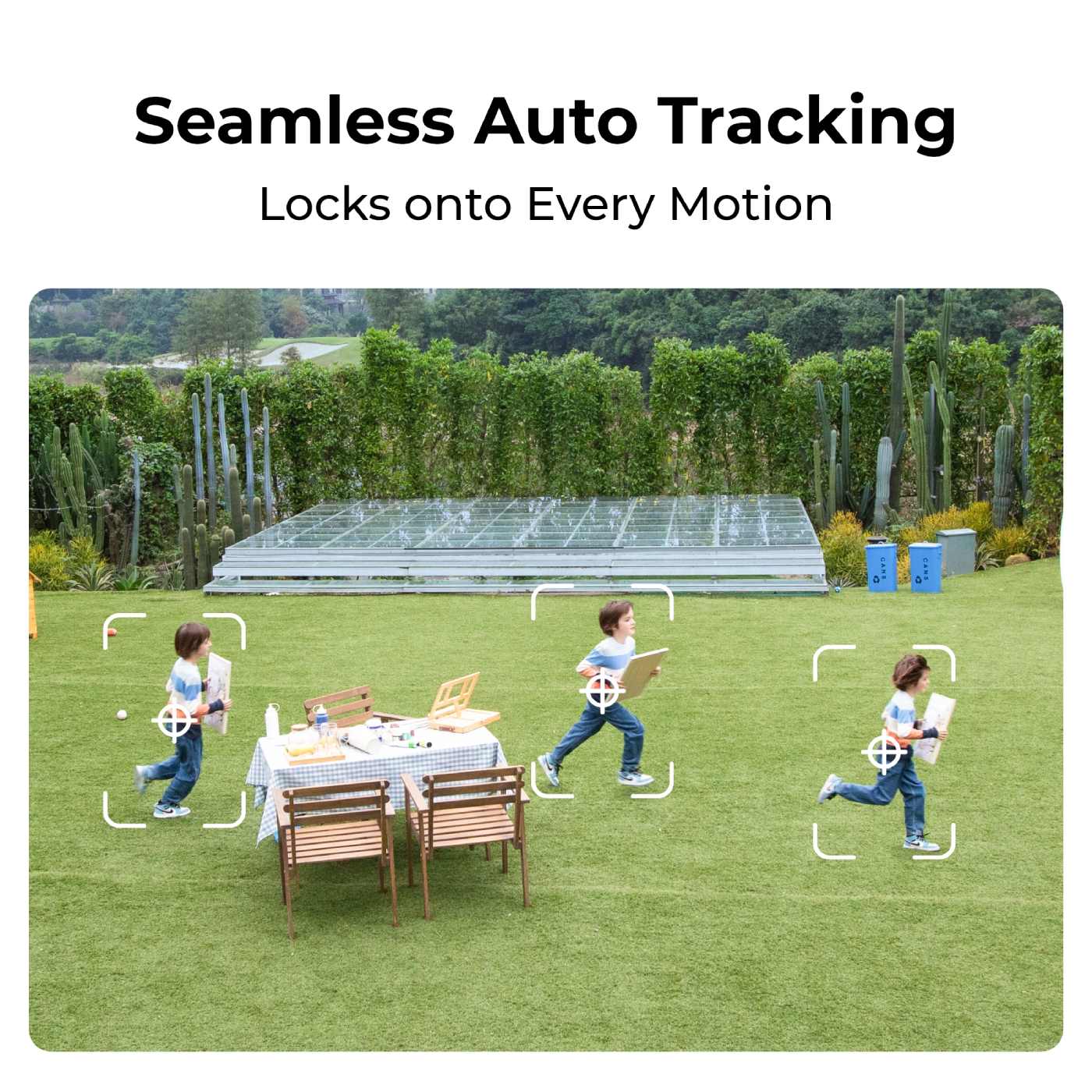 Det tar det et steg videre: når det oppdager noe viktig, låser det seg automatisk på personen, bilen eller dyret – og følger bevegelsen sømløst rundt hele eiendommen.