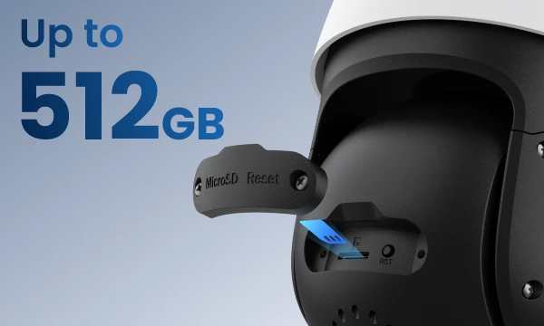 Lagre opptakene dine trygt og lokalt på et microSD-kort med støtte for hele 512 GB. Det gir deg rikelig med plass og friheten til å slippe dyre, begrensede skyløsninger.