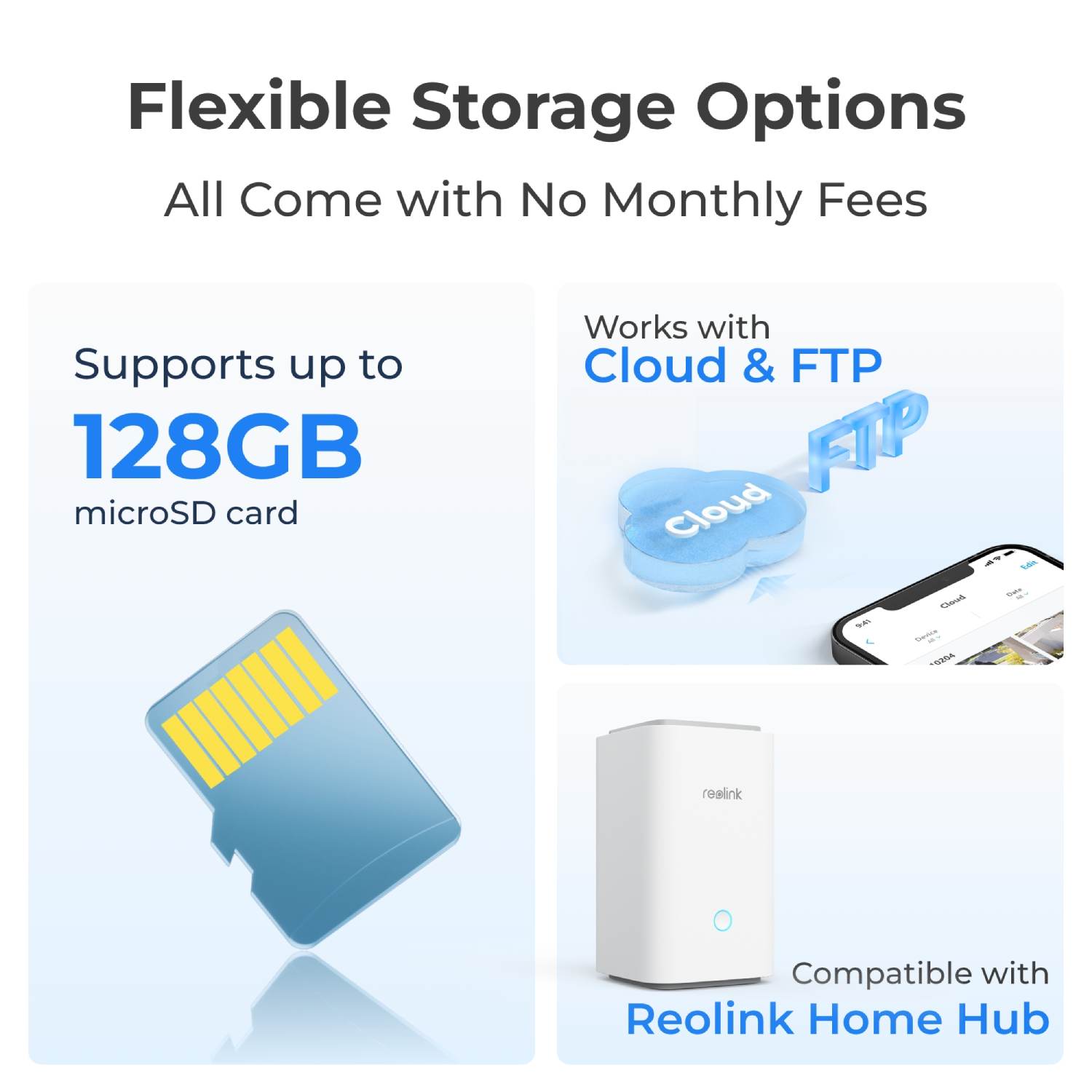 Lagre hendelser direkte på minnekort eller i Reolink Cloud for enkel avspilling og backup.