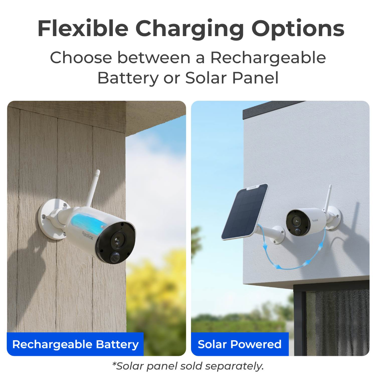 100% trådløst batteridrevet kamera. Og kobler du til et Reolink solcellepanel trenger du ikke å tenke på å lade batteriet. Gratis strøm, og ikke minst miljøvennlig.