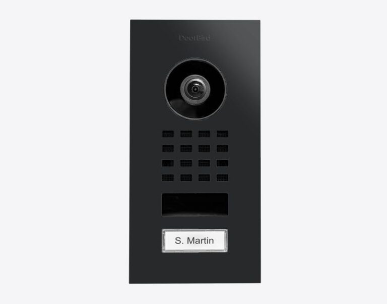 Utstyrt med et 1080p Full HD kamera får du full oversikt over inngangspartiet ditt – direkte fra din smarttelefon. Doorbird D1101V er enkel å installere og måler kun 15 x 6,5 cm. Det eksklusive designet gir et profesjonelt utseende – og passer like godt til boliger, næringsbygg og kontorlokaler.
