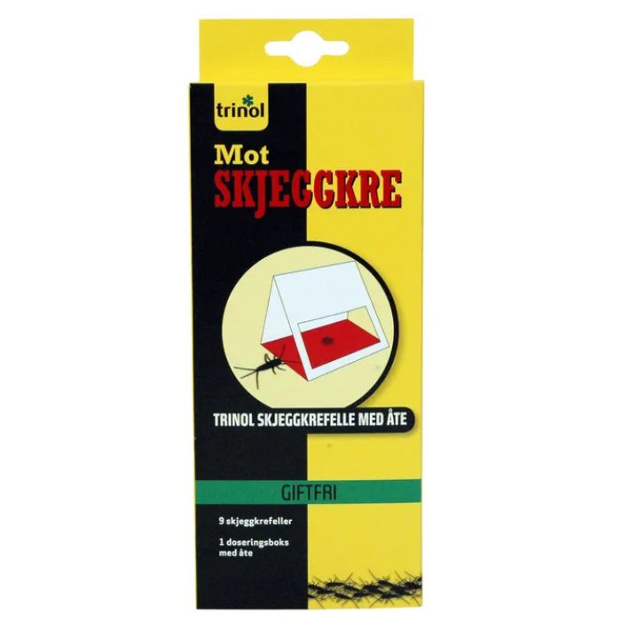 Trinol Skjeggkrefelle kombinerer kraftig lokke-åte med en effektiv limflate for å fange skjeggkre raskt og diskré.
